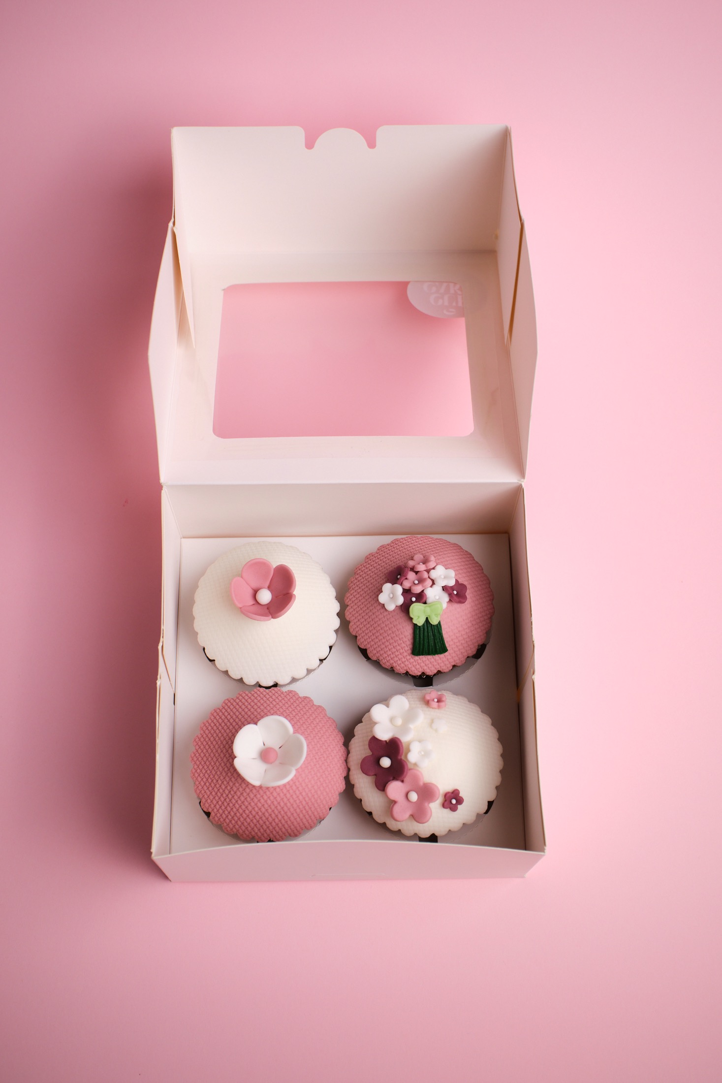 A válogatás tartalma: 4 db Cupcake sütemény Belga csokoládéval töltve, marcipánnal díszítve, papír doboz, masni, nőnapi üzenet.