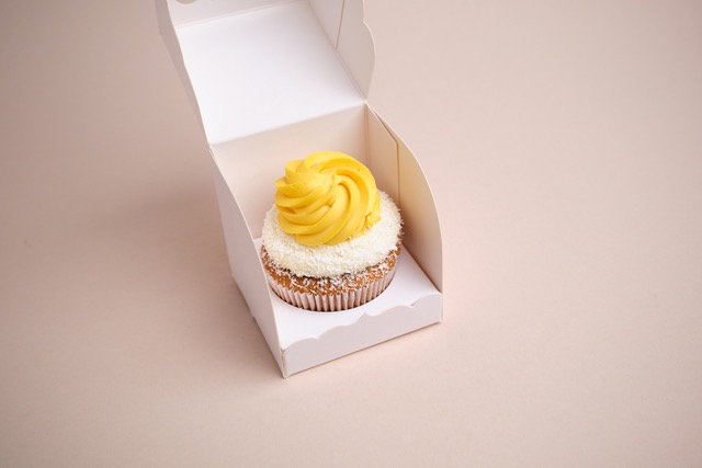 Egy darab töltött cupcake- et díszdbozba helyezünk. Ha szeretnéd el tudjuk látni színes szalaggal és egyedi üzenettel.